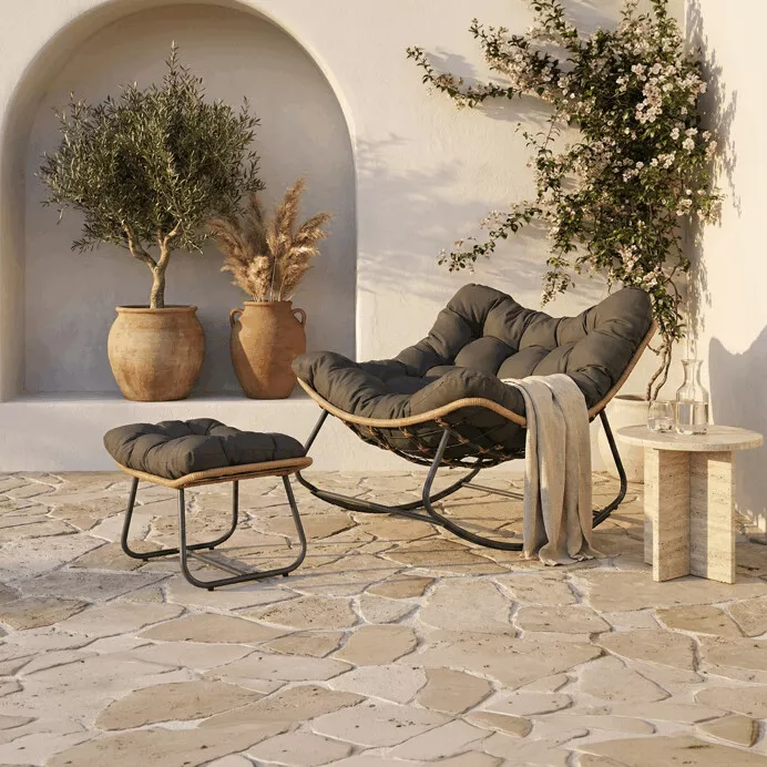 Tento set je ideální volbou pro každého, kdo hledá pohodlné houpací křeslo s podnožkou pro maximální relaxaci a odpočinek.