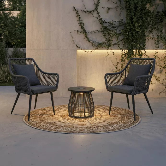 Tento set je ideální volbou pro pohodové posezení ve dvou, kde oceníte nejen komfort, ale i příjemnou atmosféru při večerním relaxu.