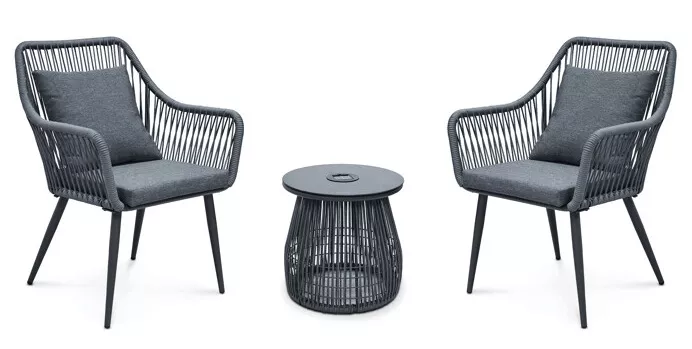 Součástí setu jsou dvě komfortní křesla s ergonomicky tvarovanými opěrkami a polštáři, které zajišťují příjemné posezení i při delším odpočinku. Konstrukce je stabilní a navržená pro každodenní venkovní použití.