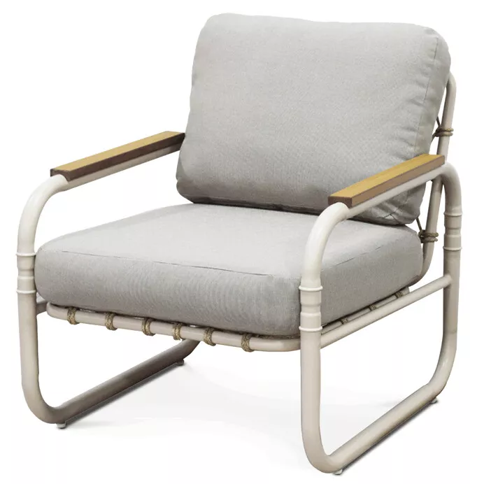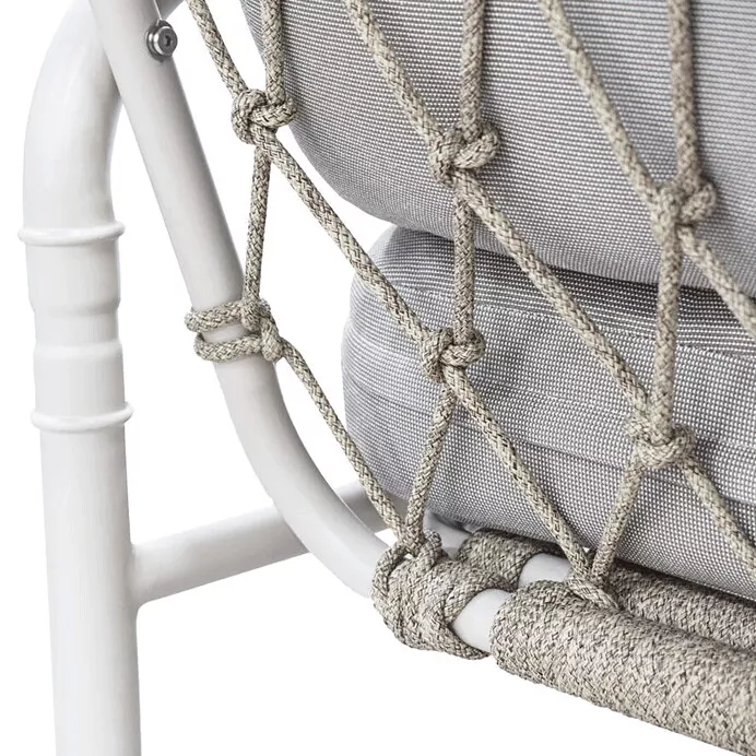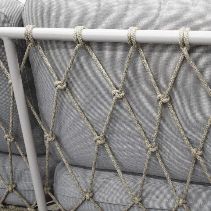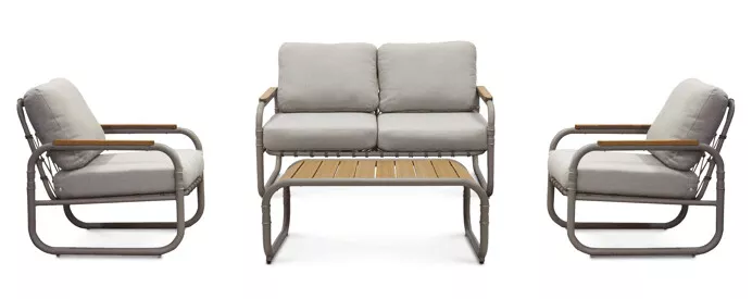 Set tvoří dvě samostatná křesla, prostorná sedačka a praktický stolek. Sedací části jsou vybaveny pohodlnými polštáři, které zajišťují komfort i při delším posezení. Otevřená zadní část konstrukce dodává celému setu lehkost a vzdušný vzhled.
