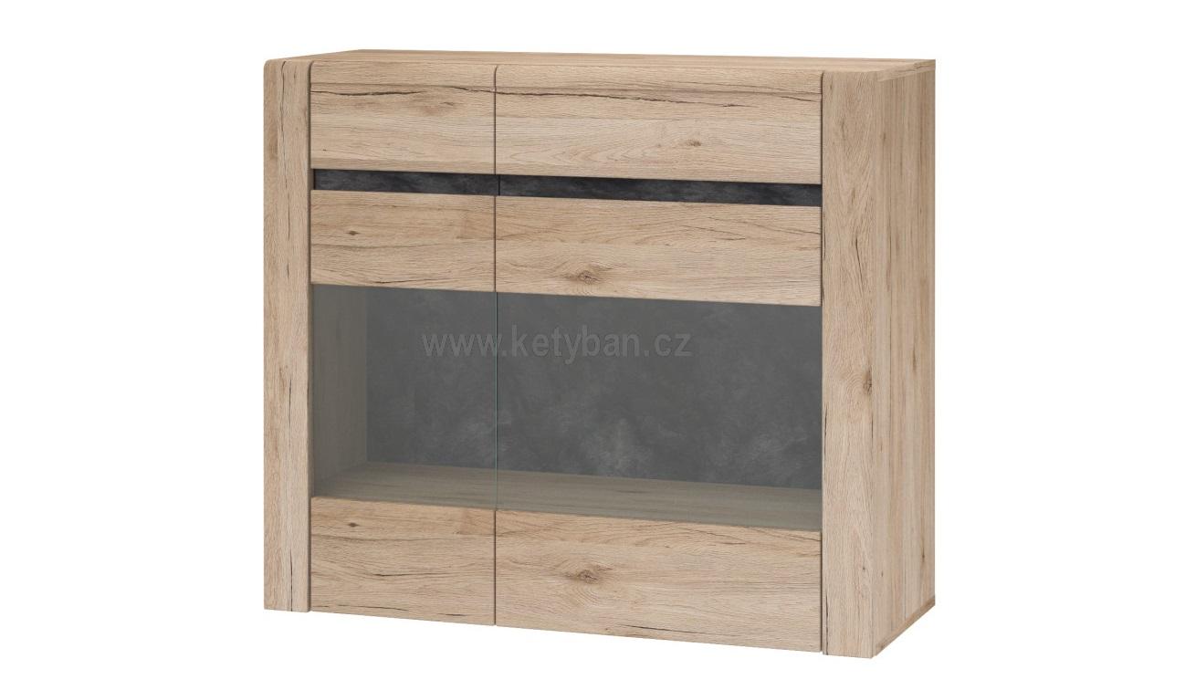 Nádstavcová vitrína Moresto typ 09 v levém provedení (2 skleněné dveře, široké vlevo, úzké vpravo). Bez skleněné police