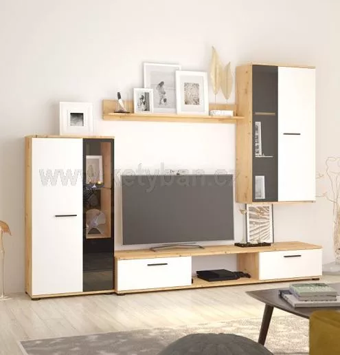 Tato obývací stěna TWINGO není jen praktickým řešením pro váš obývací pokoj, ale také stylovým prvkem, který dodá vašemu domovu elegantní a moderní ráz.