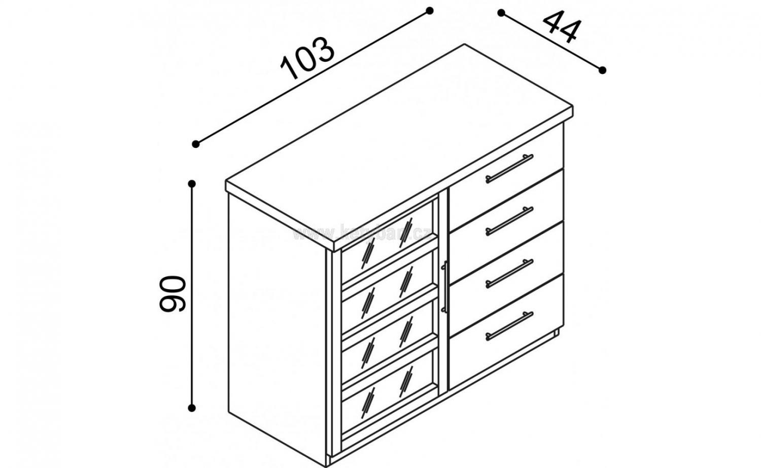 Vyrábí se v rozměrech 44 x 103 x 90 cm.