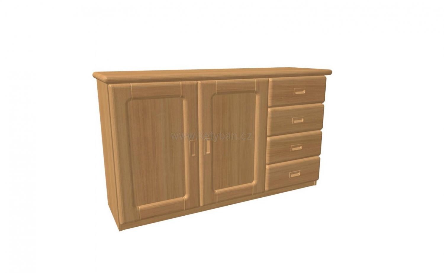 Tato velká komoda z řady REBEKA má dvoje dvířka a uvnitř dvě prostorné police, druhou část komody tvoří čtyři malé zásuvky. Komoda je vyráběna v rozměrech 49 x 155 x 90 cm.