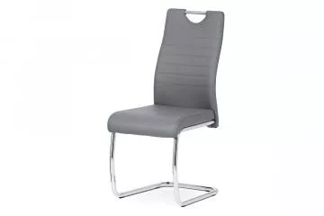Stylová moderní židle Dcl-418 s dekorativně prošitým opěrákem je očalouněná šedou koženkou. Pochromované madlo a pohupová podnož jsou kruhového průřezu. Díky praktickému madlu je manipulace s židlí snadná, stejně jako údržba je bezproblémovou záležitostí.