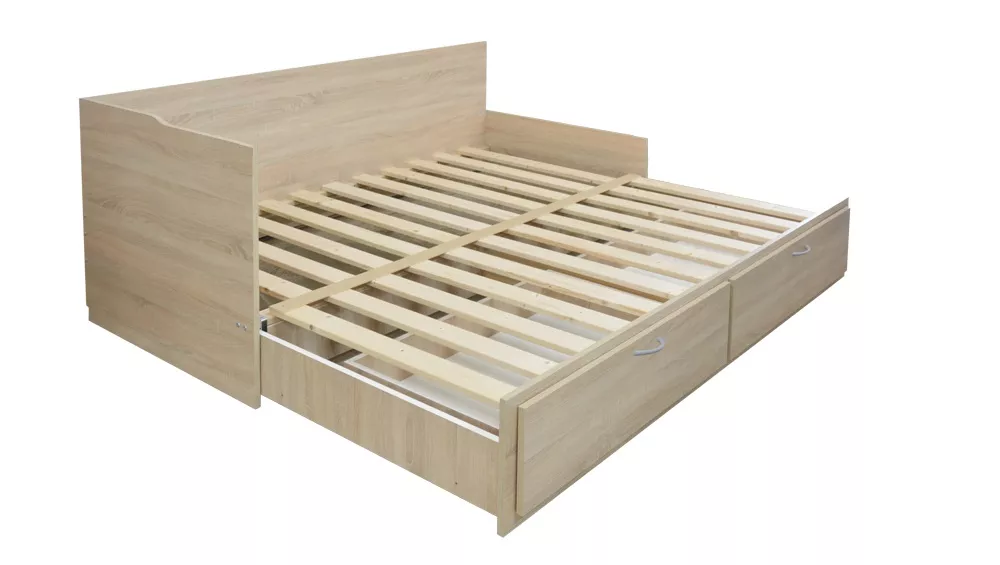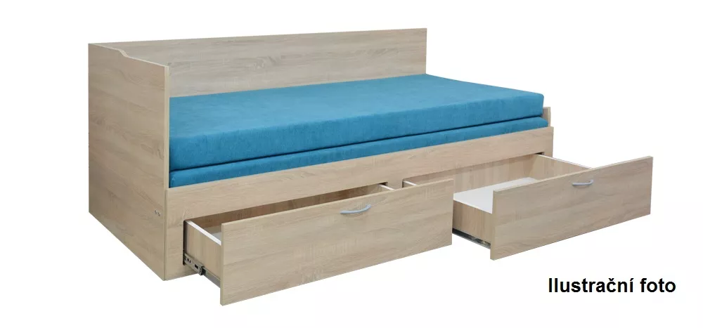 Prostorná rozkládací postel Marko z lamina s úložným prostorem a roštem.