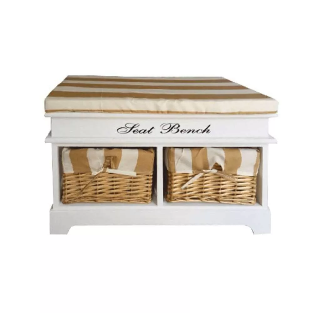 Stylová lavice Seat bench 4 v bílo-medovém provedení. Lavice má dvě zásuvky v pevném dřevěném rámu a s polštářem na vrchu. Rozměry: 70 x 45 ...
